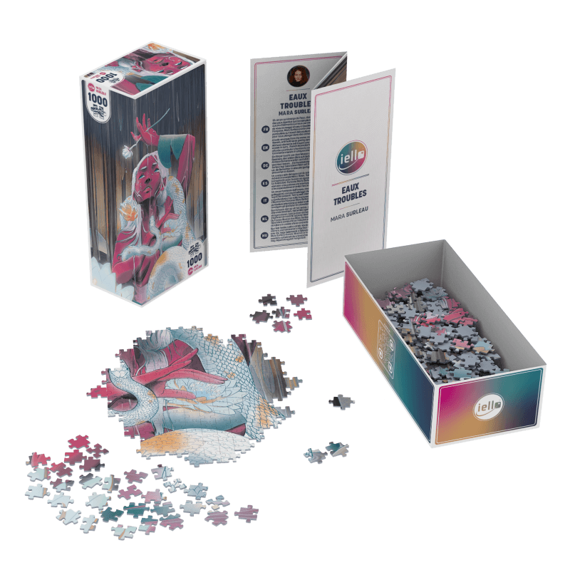 Des tons doux, des lignes délicates, mais une situation qui pourrait s’annoncer dangereuse. Prenez le risque d’apprivoiser cette créature enchanteresse et découvrez l’épreuve qui s’offre à vous. Son corps semi immergé, les fleurs qui l’entourent, son visage et ses yeux perdus dans la contemplation des serpents sont autant d’éléments qui vous permettront de vous immerger à votre tour dans ce puzzle !