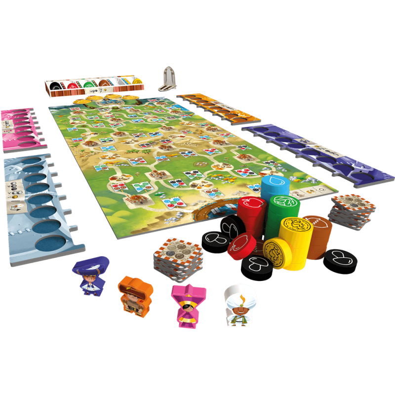 Dans cette adaptation familiale du célèbre jeu Splendor, chaque joueur collecte des ressources (eau, chou, pomme…) qu’il utilise ensuite pour progresser sur le plateau. Les villes permettent de gagner des ressources permanentes, tandis que les villages offrent l’opportunité de rejouer. Choisissez la meilleure stratégie pour atteindre les Portes du Palais avant leur fermeture : une parfaite initiation au jeu de société pour les enfants.