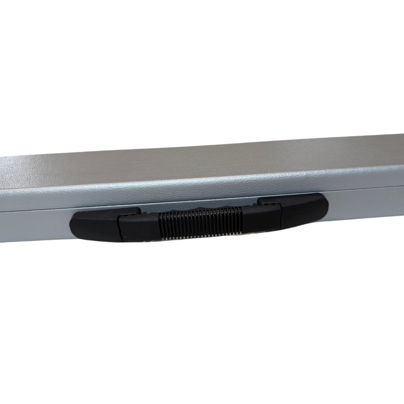 Boîtier Argent avec poignée et angles renforcés.
