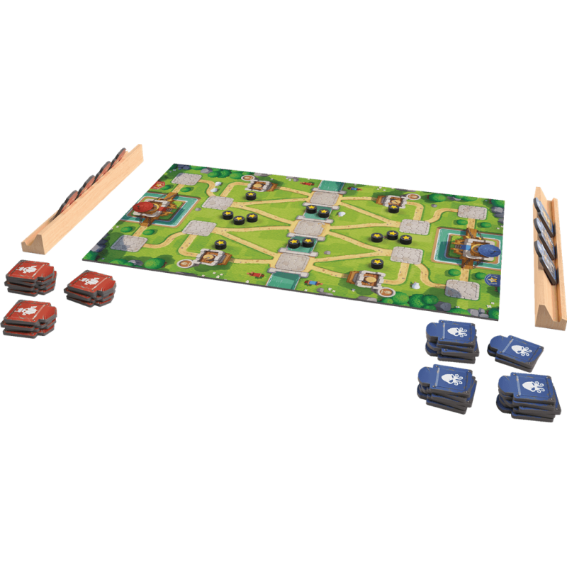 À votre tour de jeu, piochez deux tuiles Troupe de votre couleur ou posez une tuile en respectant les règles : elle doit se placer sur une case vide ou par-dessus une tuile de nombre inférieur, et vous devez pouvoir tracer une ligne continue entre votre base et la tuile que vous posez. Ensuite, appliquez son pouvoir. Petit à petit, vous gagnerez des médailles ou prendrez la base adverse, remportant la partie.