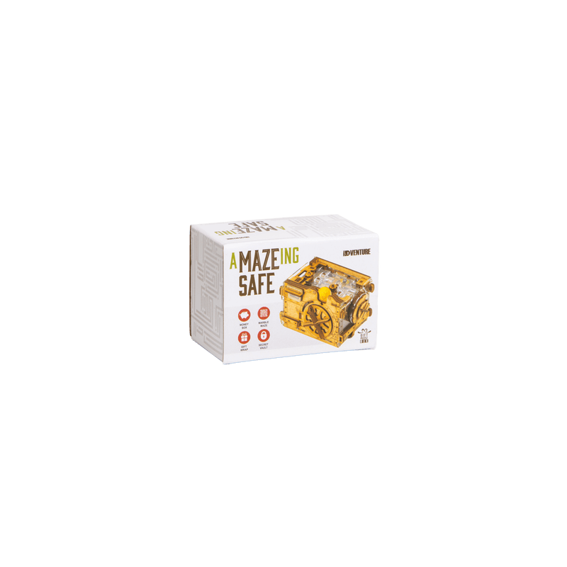 Cluegift A-Maze-Ing-Safe est bien plus qu’une simple boîte : c’est à la fois un coffre-fort miniature, une tirelire originale et un véritable casse-tête. Conçu en bois et plexiglas, il renferme un mécanisme d’ouverture unique basé sur un labyrinthe de billes. Insérez une pièce de monnaie, résolvez l’énigme du labyrinthe et tentez de déclencher l’ouverture du compartiment secret. Idéal pour y cacher un petit cadeau ou protéger vos économies !