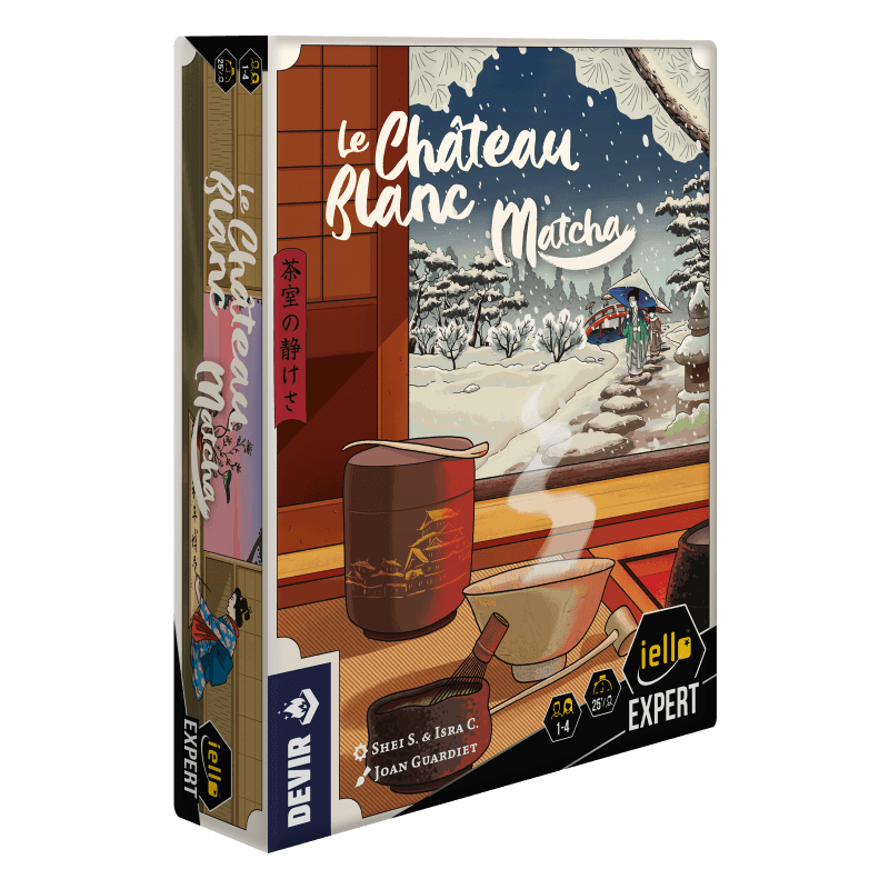 "Le Château Blanc : Matcha" est une extension qui ajoute une dimension stratégique au jeu de base "Le Château Blanc". Inspirée de la cérémonie du thé japonaise, cette extension apporte plateaux, nouveaux personnages et de nouveaux dés !