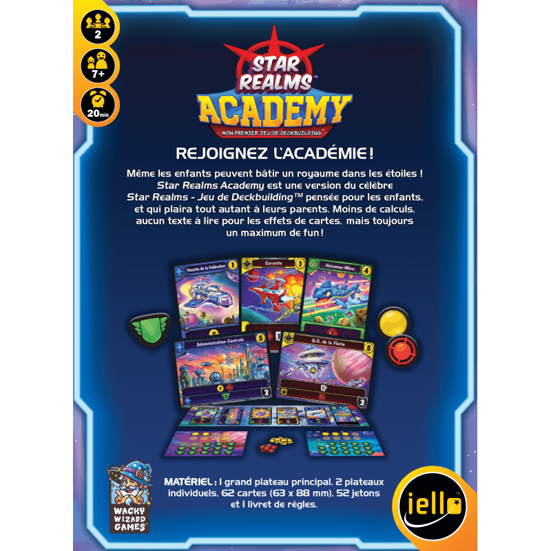 Star Realms Academy est l’édition idéale de Star Realms pour apprendre à jouer de manière simple et intuitive, dès 7 ans (voire avant !)