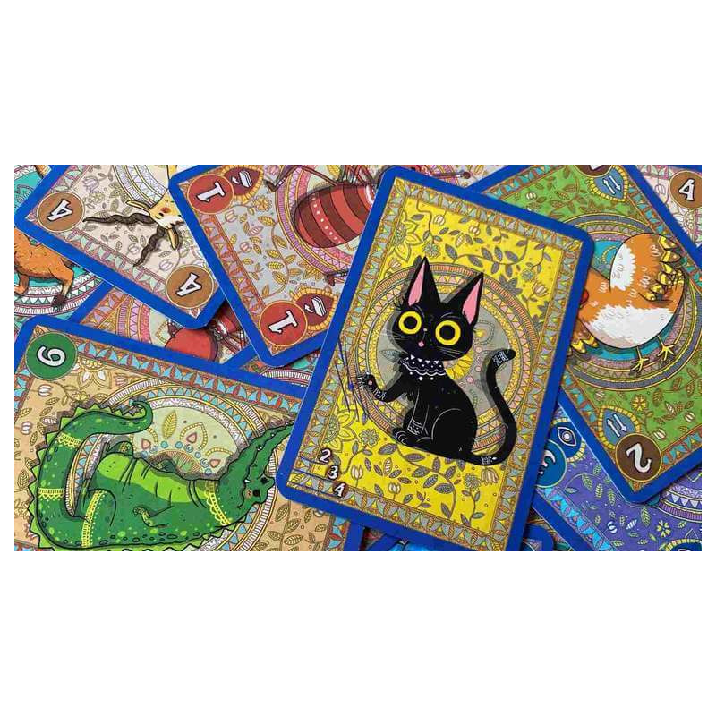 Dans ce jeu enivrant, chaque joueur reçoit une main de cartes représentant divers animaux de la jungle, allant du moineau véloce au redoutable roi Tigre. Une rangée supplémentaire de cartes animales est également disposée face cachée devant vous. Votre mission ? Être le premier à vous débarrasser de toutes vos cartes, en jouant des numéros égaux ou supérieurs à ceux déjà en jeu.