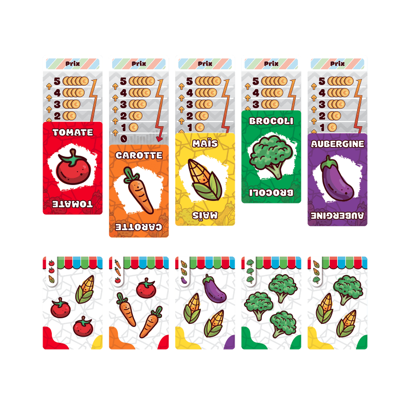 Marché Végé est un jeu de cartes fun et accessible basé sur l’économie des ventes de légumes.