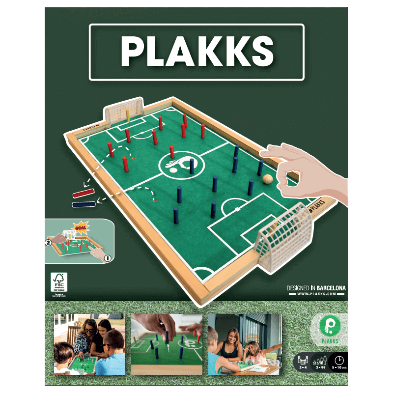 Plakks est un jeu de football de type pichenette. Les joueurs se renvoient la balle à coup de pichenette jusqu'à ce qu'un but soit marqué.