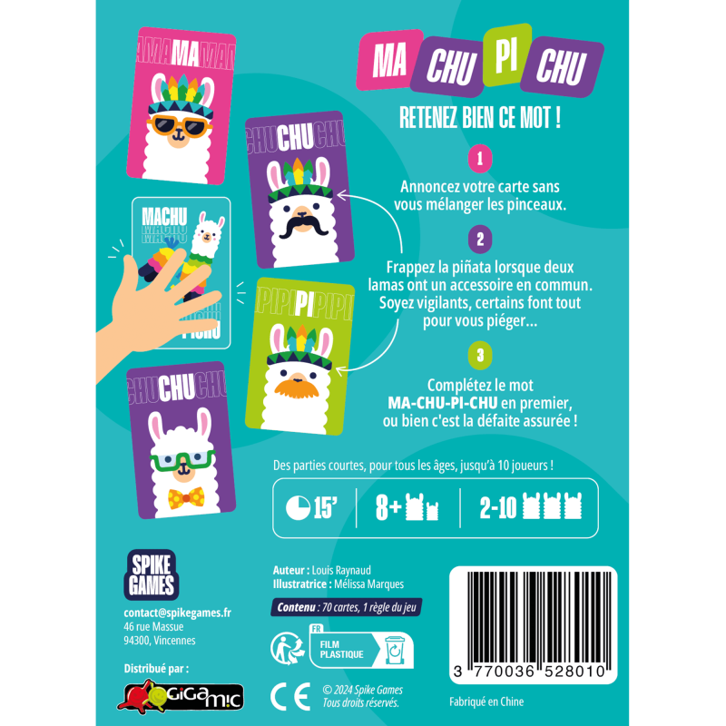 Un jeu simple, fun et ultra dynamique, parfait pour des parties pleines d’énergie en famille ou entre amis. De 2 à 10 joueurs, dès 8 ans. Alors, prêts à dompter les lamas ce Machu Pichu ?