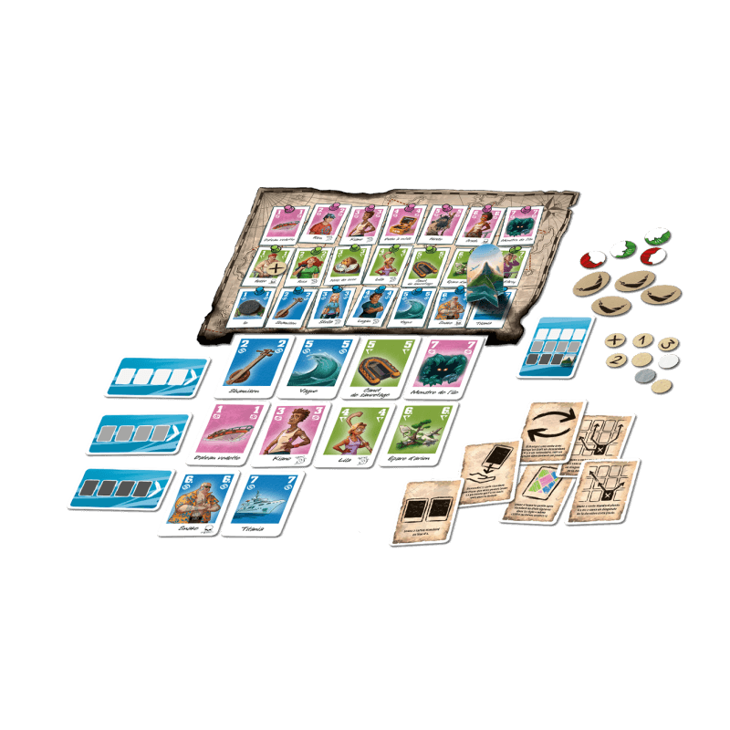 Vous deviez passer des vacances inoubliables : un yacht, un évènement sportif incroyable, le soleil du Pacifique… Mais non ! Des pirates vous ont attaqués ! Vous vous en êtes sortis de justesse à bord d’un canot de sauvetage. Après avoir dérivé pendant des heures au milieu de l’océan, vous vous échouez finalement sur une île déserte, épuisés. Pour quitter l’île, vous allez devoir vous serrer les coudes.