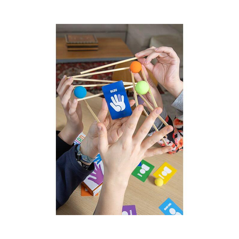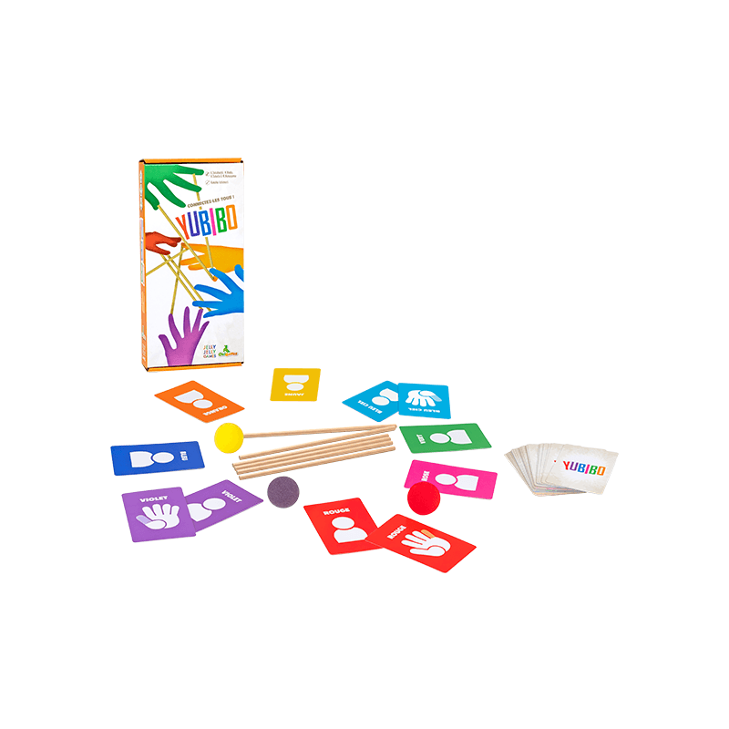 Yubibo est un jeu d’adresse coopératif. Construisez ensemble une structure aérienne à l’aide de baguettes de bois et de vos doigts ! Faites tenir chaque extrémité du bâtonnet entre les doigts des joueurs comme indiqué sur les cartes. Variez les parties en choisissant le mode défi !