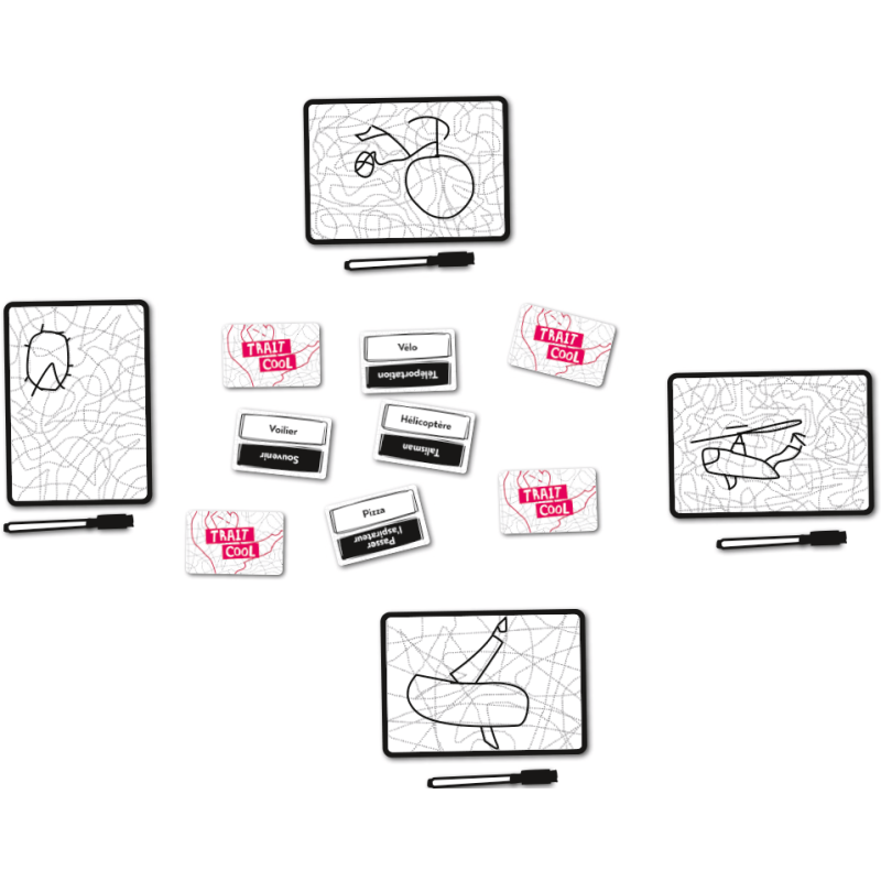 Trait Cool propose une expérience créative et coopérative unique : chaque joueur tente de faire deviner un mot en ne dessinant qu’à travers un réseau de traits déjà tracés.