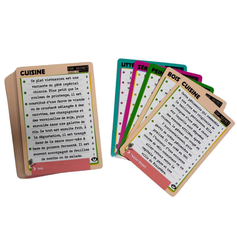 "Opération Zèbre : Extension Cuisine" est une extension de 55 cartes recto-verso (soit 110 nouvelles cartes à faire deviner) introduisant de nouveaux thèmes,dont la cuisine, à rajouter à votre jeu de base.