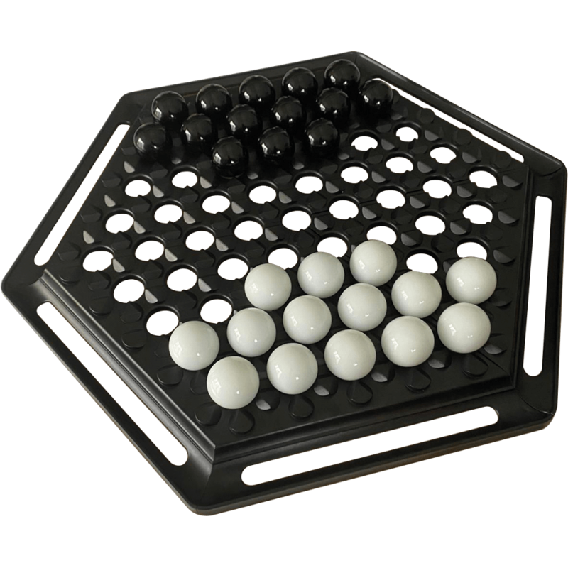 Grand classique du jeu abstrait pour deux, Abalone vous invite à tenter d'éjecter d'un plateau hexagonal six billes de votre adversaire en les poussant avec les vôtres.