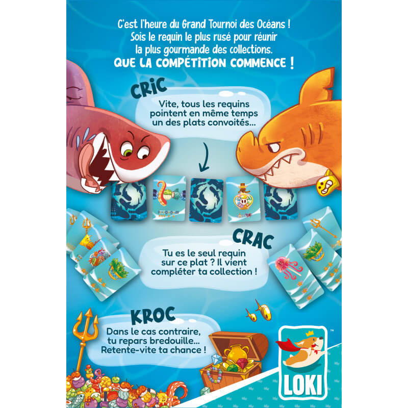 Mais attention : lorsqu’un requin a vraiment faim, il pointe avec les deux mains pour augmenter ses chances de récupérer des cartes… peut-être même celle que vous convoitiez !