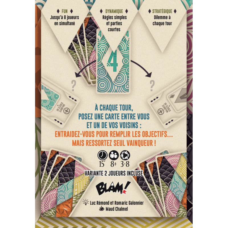 A chaque tour, posez simplement une carte entre vous et votre voisin de gauche ou de droite. Entraidez-vous pour remplir des objectifs mais soyez le plus malin afin de ressortir seul vainqueur !