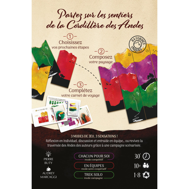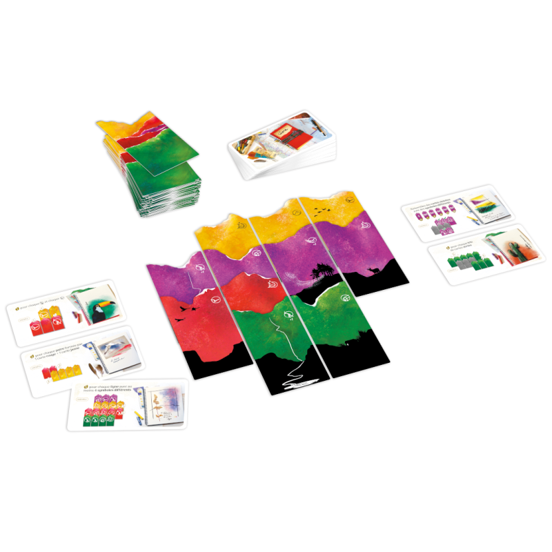 Dans Sierra, composez votre paysage en équipe à l'aide de magnifiques cartes colorées et tentez de marquer le plus de points en fonction de vos objectifs personnels, tout en respectant ceux de vos compagnons de marche.