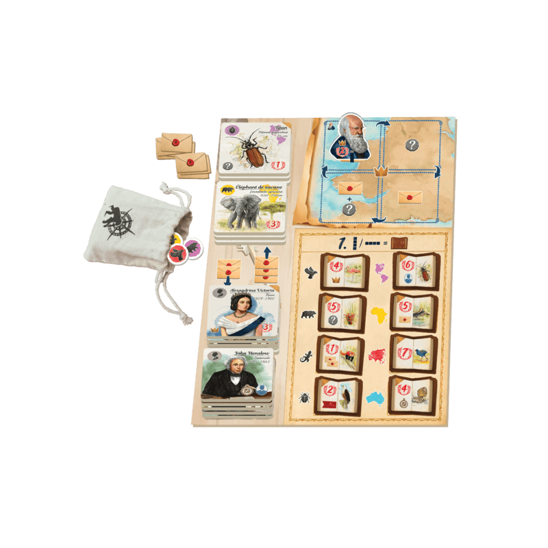 Correspondances est une extension pour Sur les Traces de Darwin qui vous ouvre de nouvelles portes stratégiques grâce à de nouveaux éléments de jeu.