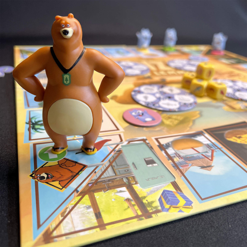 3 - Esquivez Grizzy : Le dernier dé fait avancer Grizzy selon la carte tirée. S’il rattrape un Lemming, celui-ci perd une partie de sa nourriture.