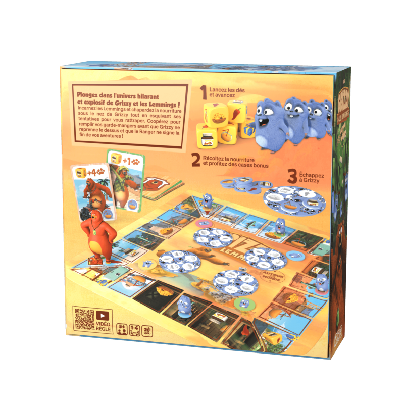 Un message de l'auteur, Christophe Lauras : Adapter Grizzy & les Lemmings en jeu de société a été un défi passionnant ! L’univers du dessin animé, créé par le studio HARI, déborde d’énergie et de chaos, et je voulais en capturer toute l’intensité. J’ai imaginé un jeu coopératif où les joueurs doivent ruser et s’entraider pour échapper à Grizzy.