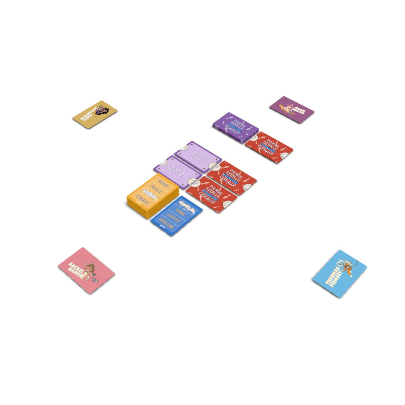 Chaque joueur pioche une carte, elle comporte 4 mots dont un intrus ...