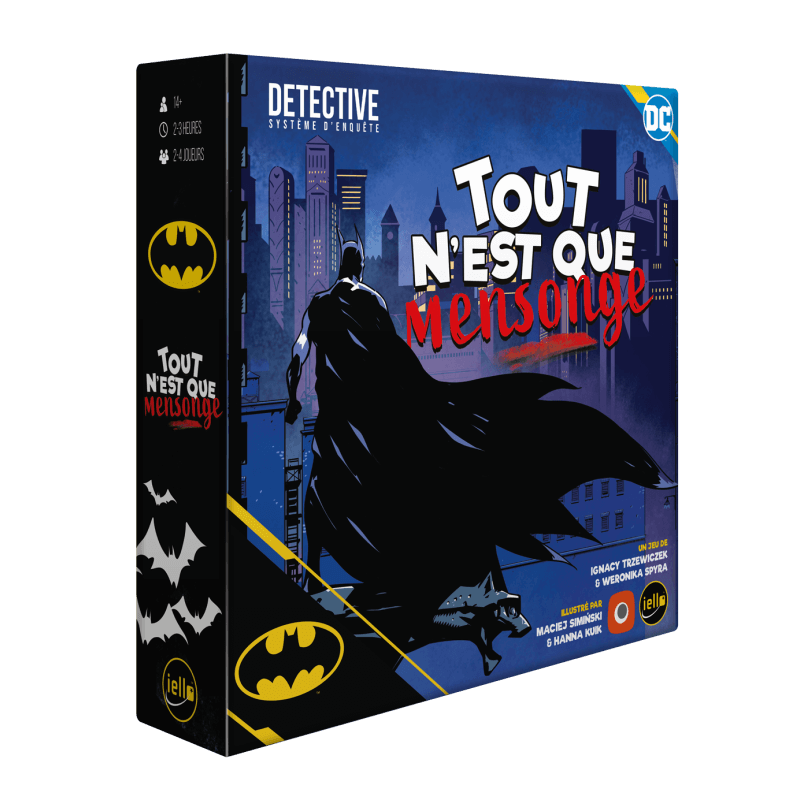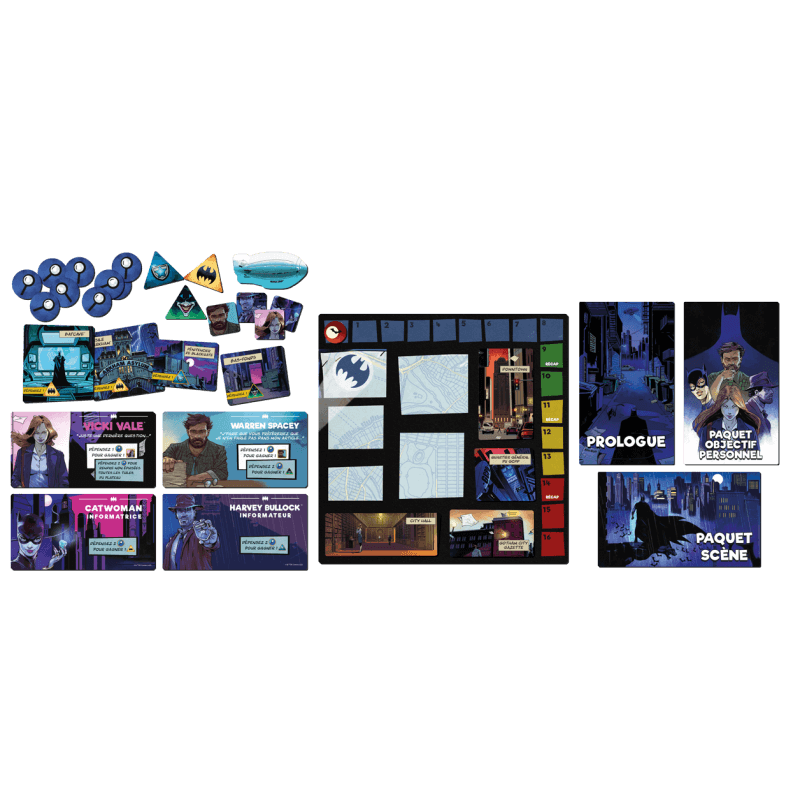 Les criminels sont des êtres à la fois superstitieux et lâches. Ils meurtrissent sans jamais s’avilir, ce qui les rend effroyablement puissants. Chaque jour, des voix sont réduites au silence. La cupidité et la corruption coulent dans les veines des autorités civiles, et pourtant, nous restons là. Nous sourions et nous votons pour ce que nous avons toujours connu. Chaque jour, un nouveau mensonge est colporté. La situation désespérée de Gotham City n’est que le reflet des citoyens qui y résident : des citoyens élevés par la ville, modelés par d’intimidants seigneurs du crime en nantis flagorneurs et en élites oppressives. Ceux qui sont depuis si longtemps superstitieux et lâches se sont endurcis face à la peur, face à la gentillesse, face à l’honnêteté. Et finalement, ce mensonge si simple que nous nous racontons tous, c’est de croire qu’un symbole nous sauvera. – Warren Spacey, Gotham City™ Gazette BATMAN™: TOUT N’EST QUE MENSONGE est un jeu coopératif et narratif dans lequel vous êtes recruté par Jim Gordon™ afin d’enquêter sur des affaires que le Gotham City™ Police Department (GCPD) ne peut résoudre seul. Vous y incarnez l’un des quatre personnages proposés : le détective brutal, Harvey Bullock ; la jeune journaliste passionnée, Vicki Vale ; le vétéran désabusé reconverti en journaliste, Warren Spacey ; ou la cambrioleuse rusée la plus populaire, Selina Kyle, alias Catwoman. Chaque épisode vous met au défi : vous devrez travailler avec les autres joueurs tout en essayant d’accomplir les objectifs personnels de votre propre personnage. Vous arpenterez tout Gotham City : des sinistres bas-fonds aux bureaux animés du Gotham City Gazette. Prenez tout le temps qu’il vous faudra, mais n’oubliez pas que Gotham City abrite le plus grand détective au monde... Au terme de chaque épisode, vous devrez remplir un rapport final et serez jugé sur le temps que vous y aurez passé, ainsi que sur les secrets que vous aurez découverts.