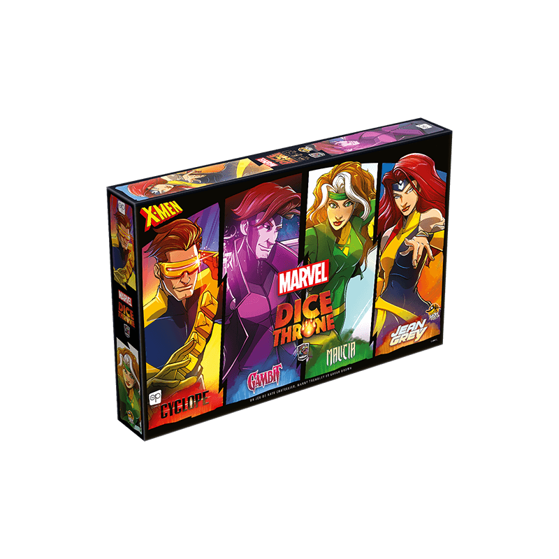 Dans Marvel Dice Throne X-Men , vous devenez l’un des quatre héros les plus célèbres des X-Men : Cyclope, Gambit, Malicia et Jean Grey !